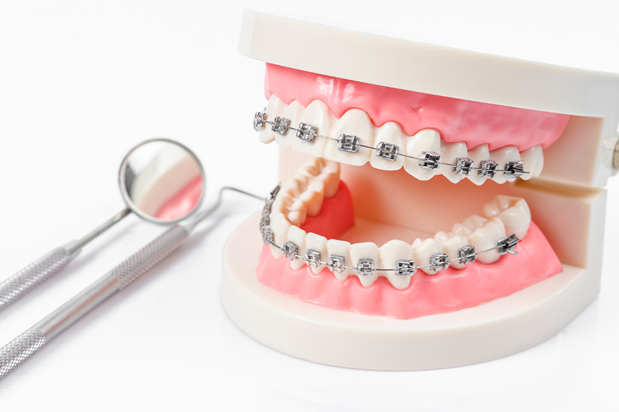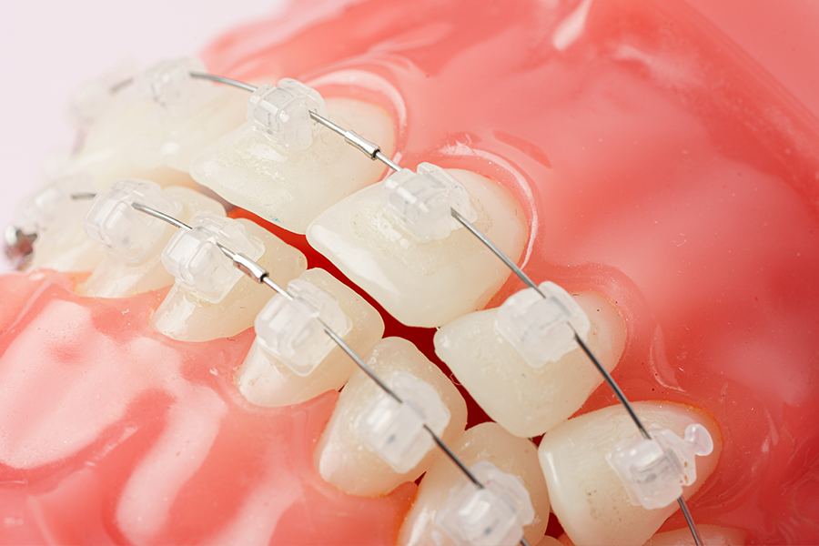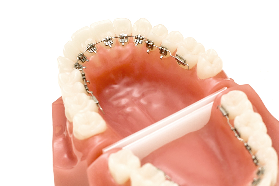 ワイヤーブラケットという器具を歯に接着して歯を動かします。ワイヤーブラケットは、オーソドックスなタイプの矯正装置です。歯面にブラケットと呼ばれる装置を装着し、そこにワイヤーを通して歯を理想の位置に移動させます。